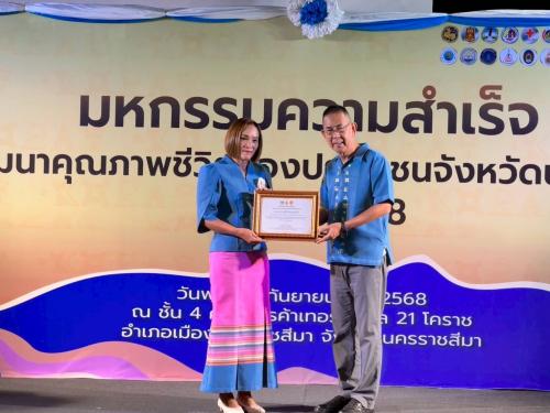 นายชัยวัฒน์ ชื่นโกสุม ผู้ว่าราชการจังหวัดนครราชสีมา ให้เกียรติเป็นประธานเปิดโครงการมหกรรมความสำเร็จการพัฒนาคุณภาพชีวิตของประชาชน จังหวัดนครราชสีมา ประจำปี 2568 และมอบประกาศเกียรติคุณเชิดชูเกียรติ หน่วยงาน องค์กร ที่มีบทบาทและผลงานความสำเร็จในการสนับสนุนการขับเคลื่อนงานขจัดความยากจนและพัฒนาคนทุกช่วงวัยอย่างยั่งยืน ตามหลักปรัชญาของเศรษฐกิจพอเพียงโดดเด่นเป็นที่ประจักษ์