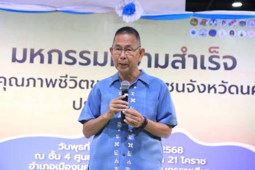 โดยมี นางสาวพุทธิมาลย์ เชียรพิมาย พัฒนาการจังหวัดนครราชสีมา กล่าวรายงานวัตถุประสงค์ ของการดำเนินโครงการ “มหกรรมความสำเร็จการพัฒนาคุณภาพชีวิตของประชาชน ประจำปี 2568” เพื่อเผยแพร่ผลงานและความสำเร็จด้านการพัฒนาคุณภาพชีวิตในทุกมิติ ทั้งมิติสุขภาพมิติความเป็นอยู่ มิติการศึกษา มิติรายได้ และมิติการเข้าถึงบริการภาครัฐ ตลอดจนเป็นเวทีแลกเปลี่ยนเรียนรู้และยกย่องเชิดชูเกียรติ ชุมชนและบุคคลต้นแบบที่มีผลงานโดดเด่น กิจกรรมครั้งนี้ ประกอบด้วย