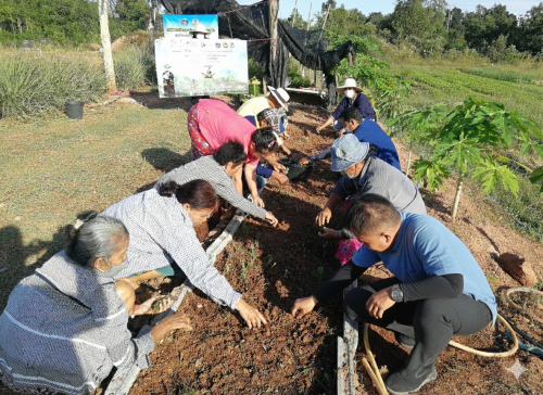 ณ ศูนย์เรียนรู้ทฤษฎีใหม่รูปแบบ โคกหนอง นา แปลงนางสาวภัทรศรี ไชยสุวรรณ บ้านโสกแจ้ง หมู่ที่ 8 ตำบลเสมา อำเภอสูงเนิน จังหวัดนครราชสีมา